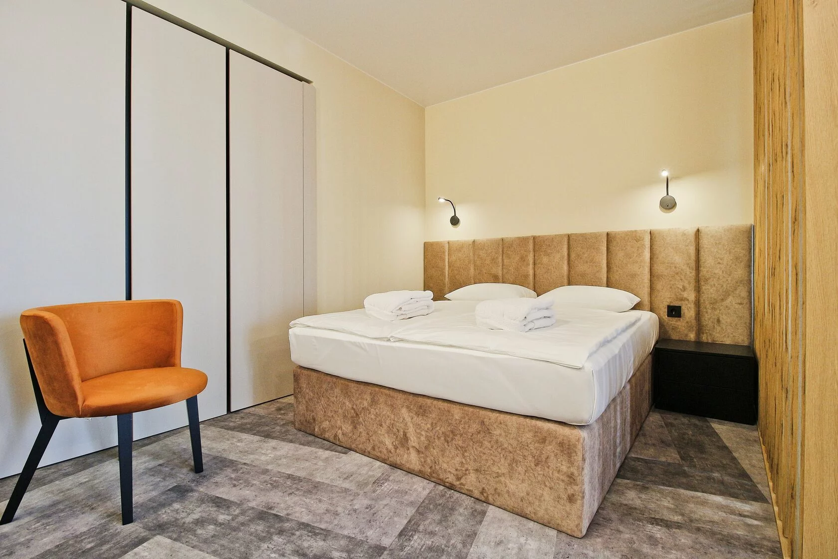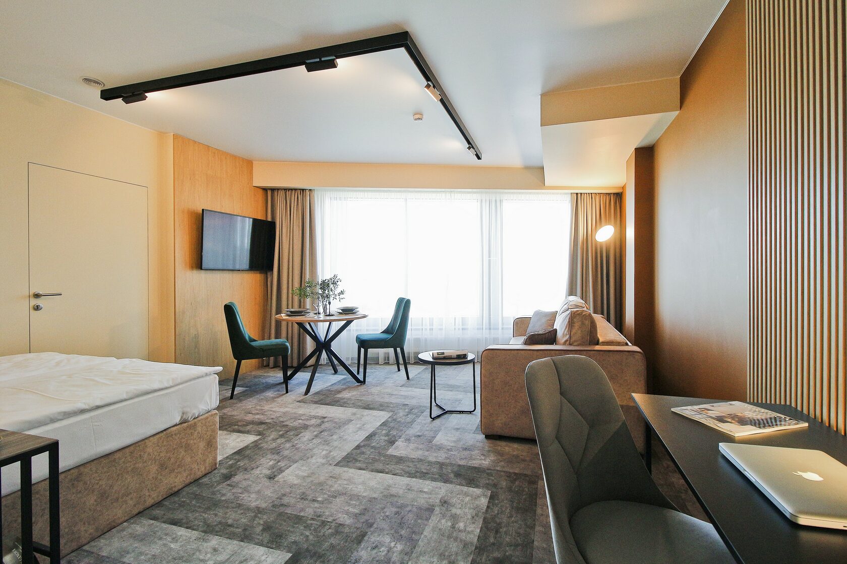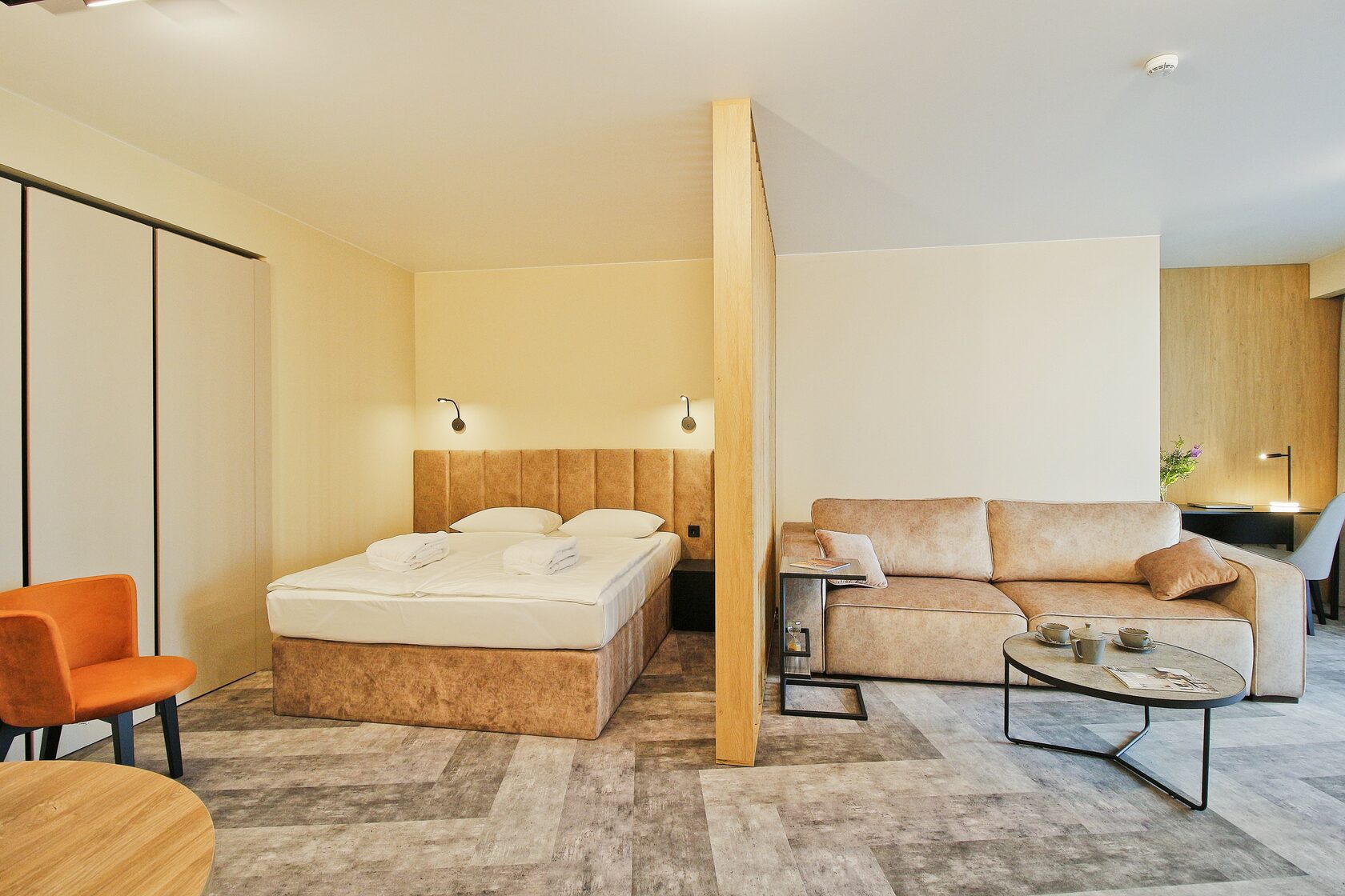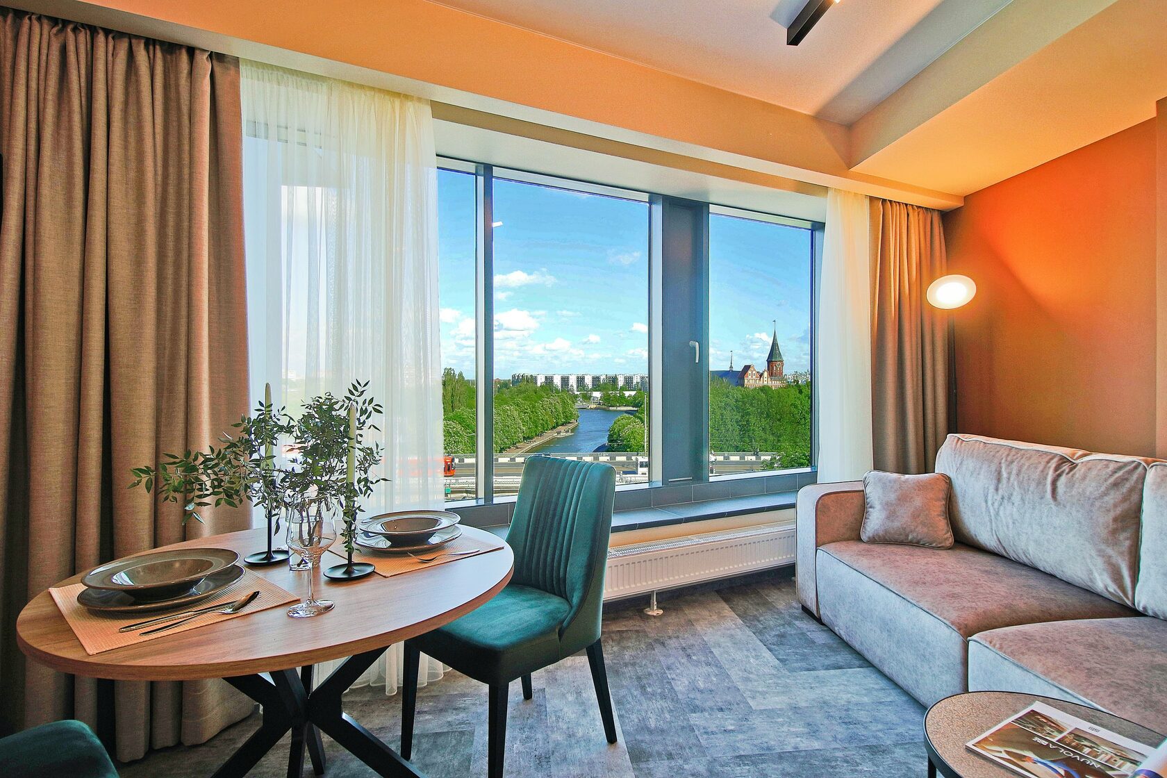 Спокойный минималистичный интерьер в теплой песчаной гамме дает отсылку к дюнам на побережье Балтийского моря. Натуральный дизайн и мягкие приглушенные тона интерьеров Апарт-отеля «Lastadie» создают неповторимую атмосферу сочетания стиля и комфорта.