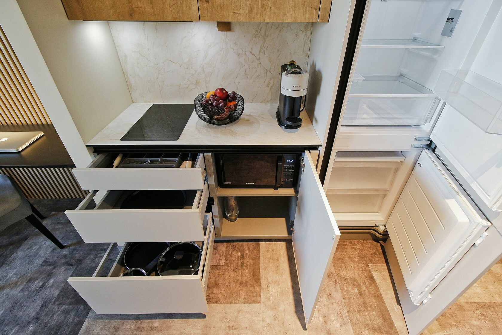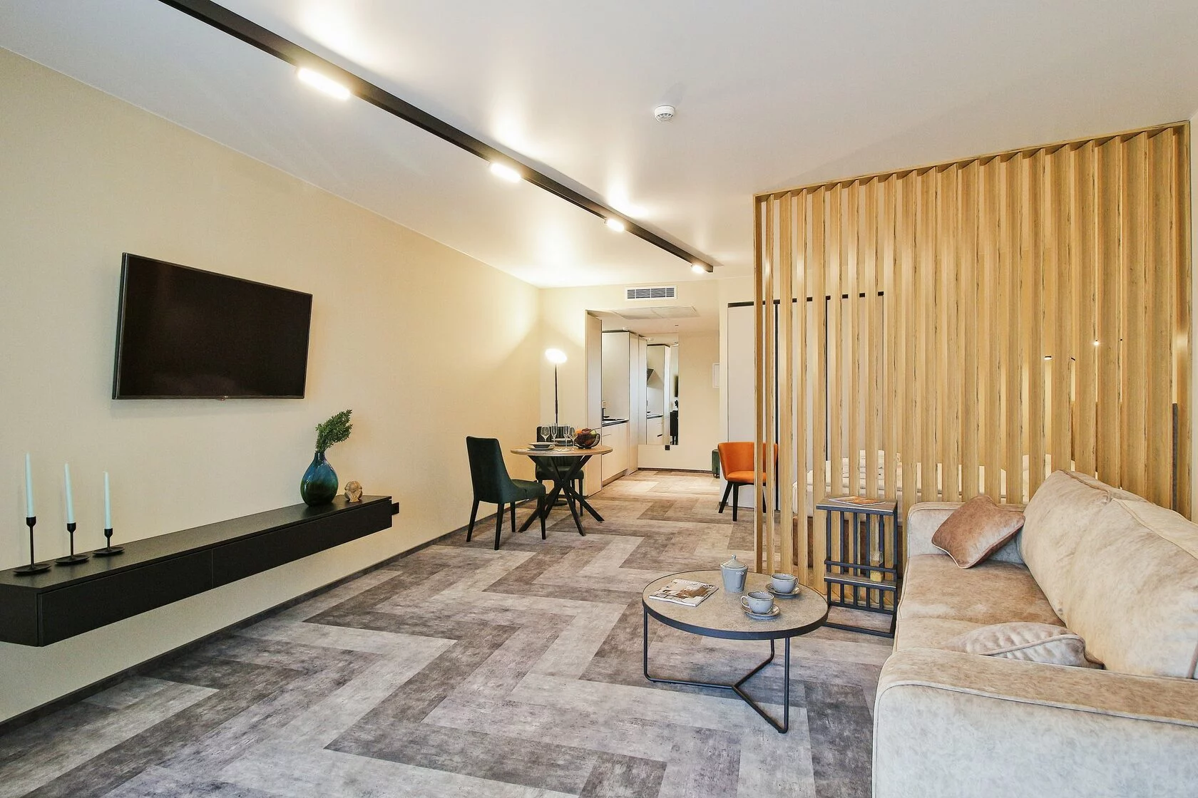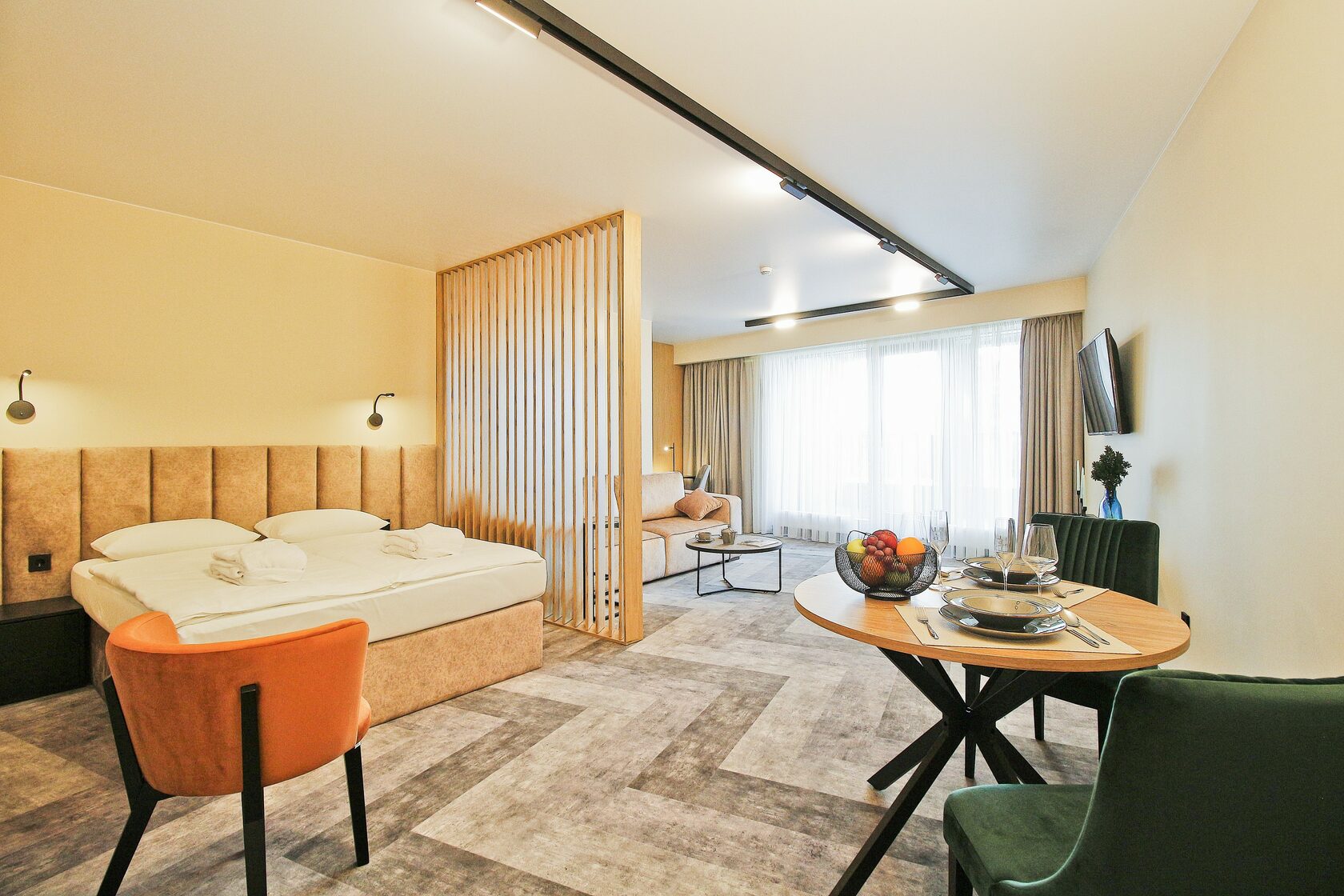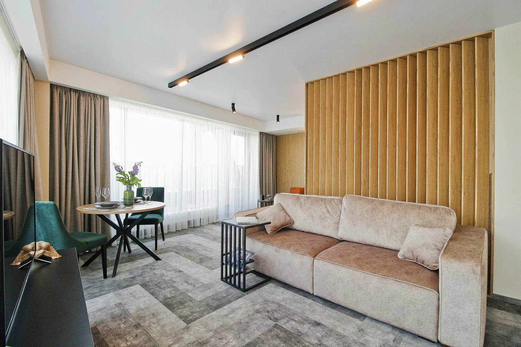 Спокойный минималистичный интерьер в теплой песчаной гамме дает отсылку к дюнам на побережье Балтийского моря. Натуральный дизайн и мягкие приглушенные тона интерьеров Апарт-отеля «Lastadie» создают неповторимую атмосферу сочетания стиля и комфорта.