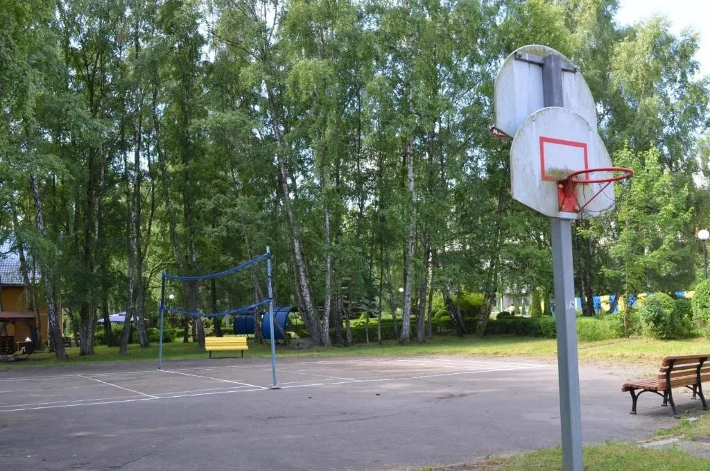 На его территории есть банный комплекс, тренажерный зал, волейбольная площадка и теннисный корт.